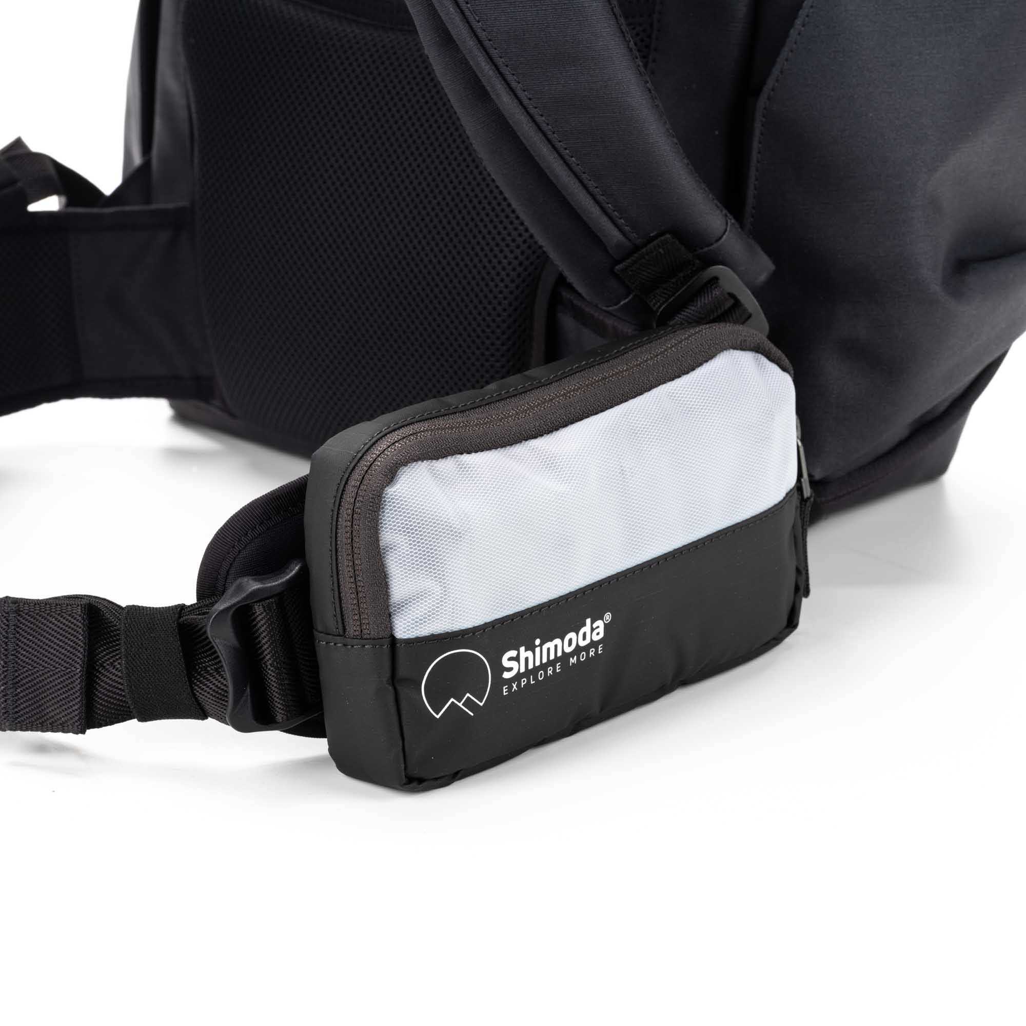 We wilden een eenvoudige pouch die werkt met ons rugzak‑riemsysteem, maar die ook los gedragen kan worden en snel opgeborgen kan worden wanneer deze niet nodig is. Ons antwoord is de Shimoda Accessory Pouch.