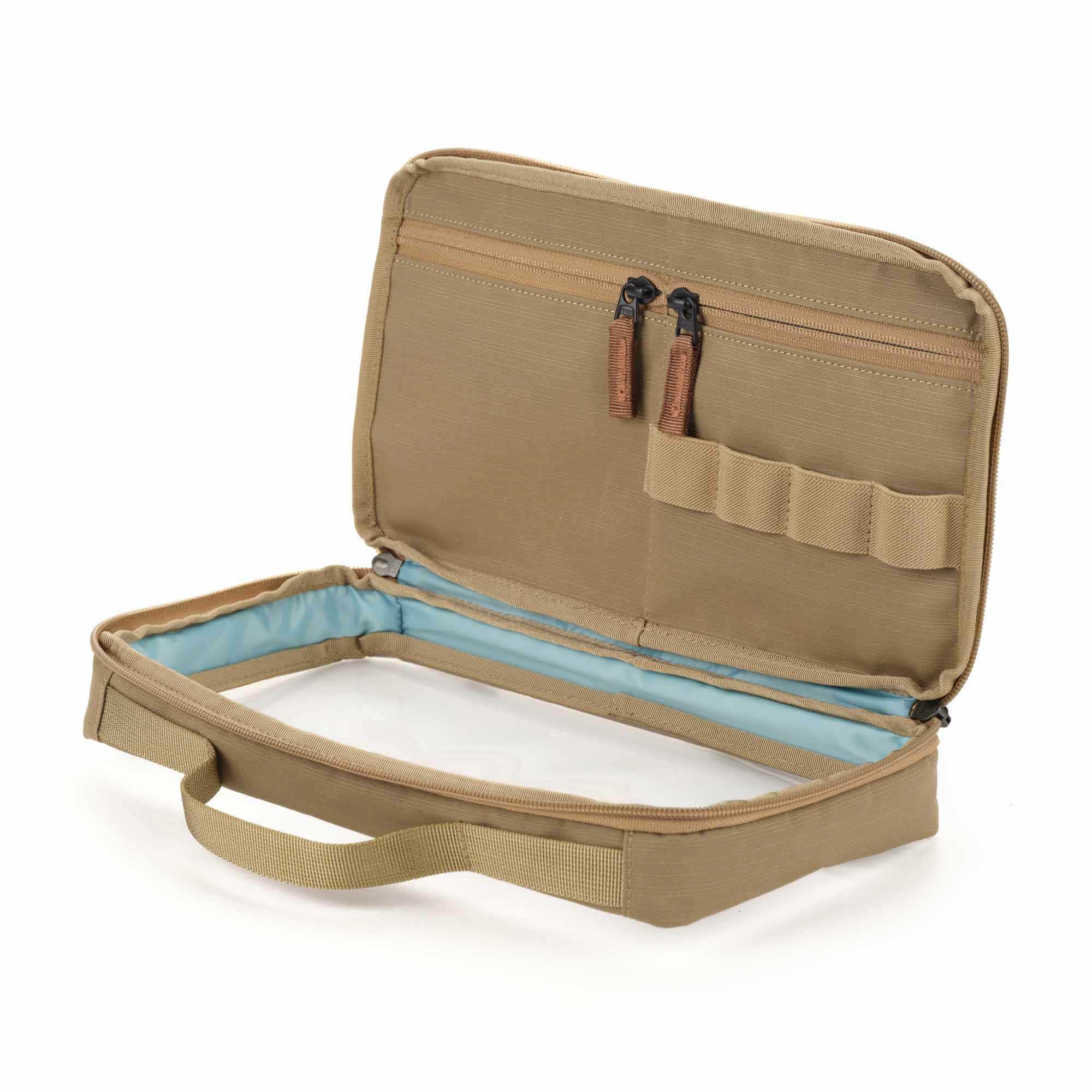 De handgreep maakt los dragen eenvoudig. Externe lussen zijn beschikbaar om de case aan de buitenkant van je tas te bevestigen.