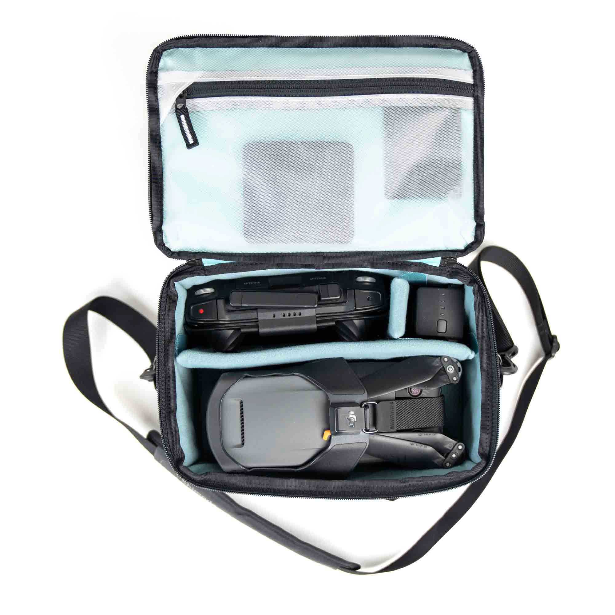 De Drone Core Pro is een gewatteerde beschermcase voor DJI Mavic-serie drones met RC Pro-controller, extra accu’s en filters. De verdelers en compartimenten zijn exact afgestemd op Mavic-setup’s voor een efficiënte en veilige indeling.