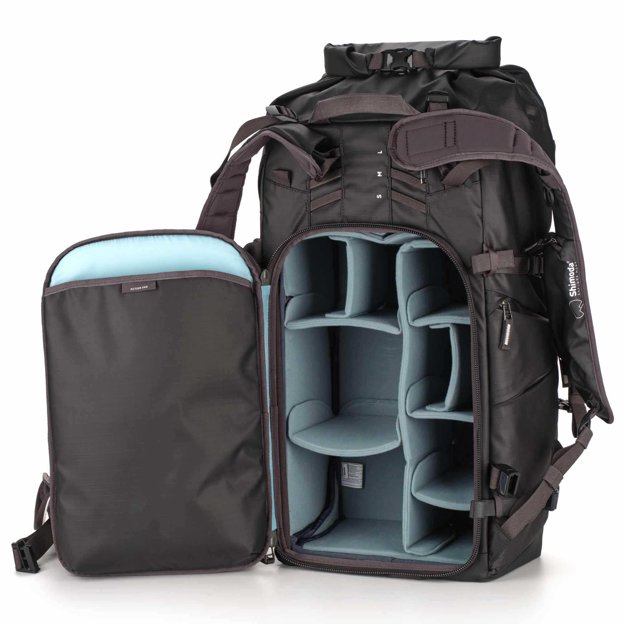 Integreert naadloos met de zijtoegang van de Shimoda X40 en X50. Biedt ook toegang tot camera/lens via de ritssluiting aan de basis van de uitrekbare rolltop en standaard toegang via de achterkant tot het volledige camerasysteem.