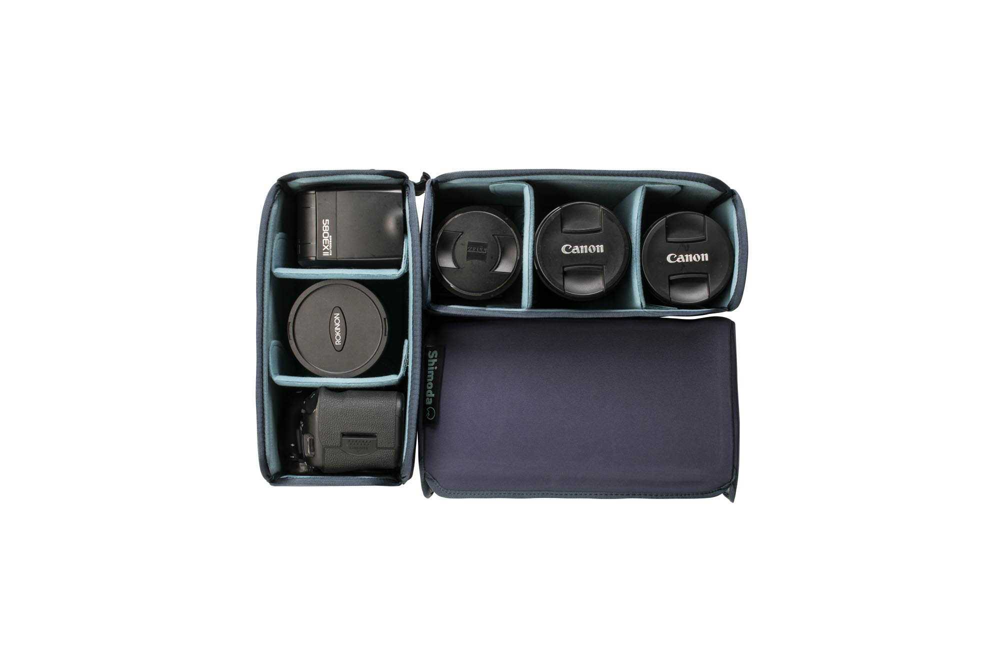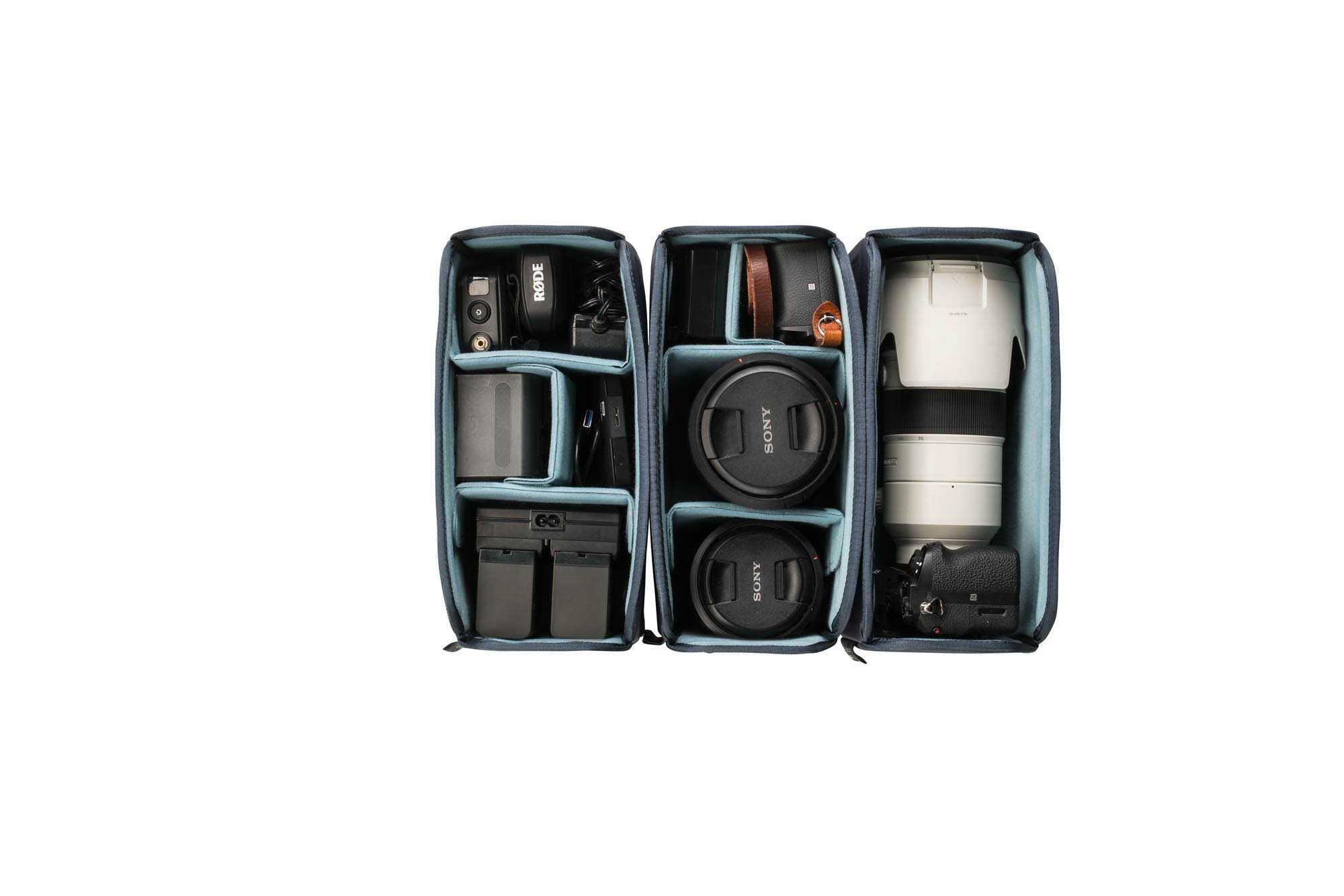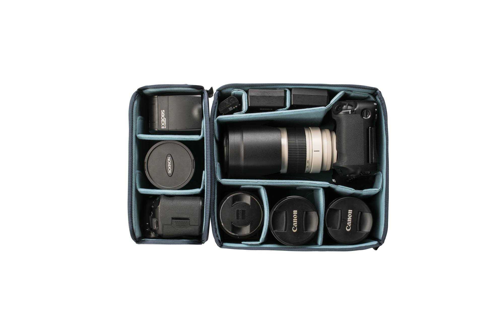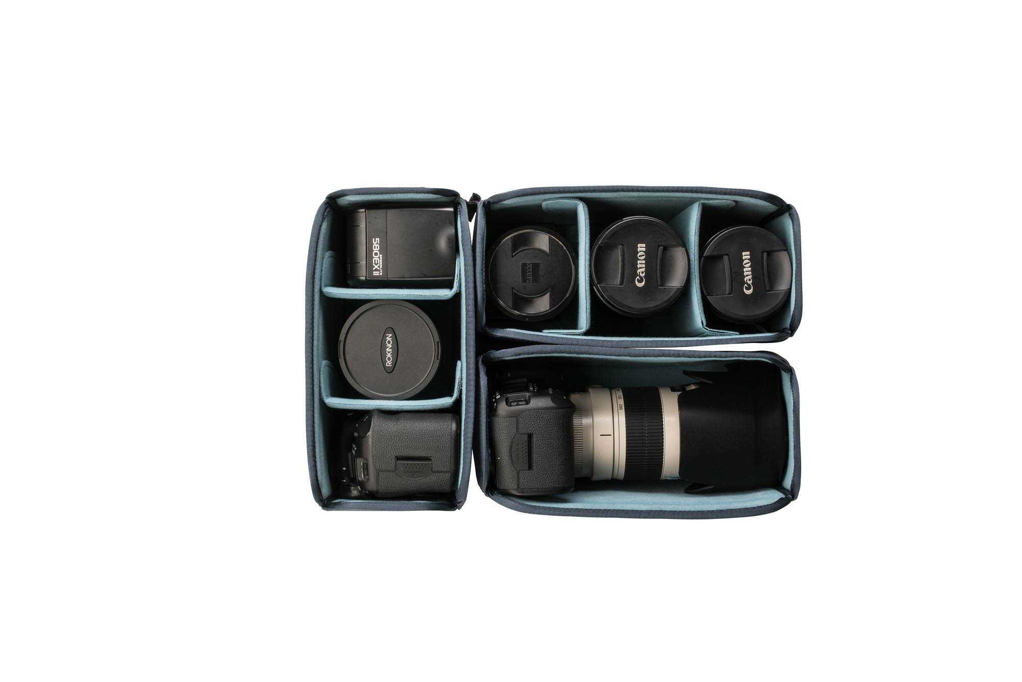 Ontworpen om een mirrorless of niet-gegripte DSLR-body met een gemonteerde lens tot 70-200mm f/2.8 te dragen. Optioneel biedt het ruimte voor 2-3 extra lenzen en accessoires.
