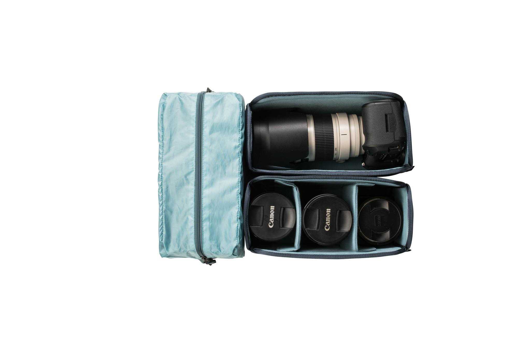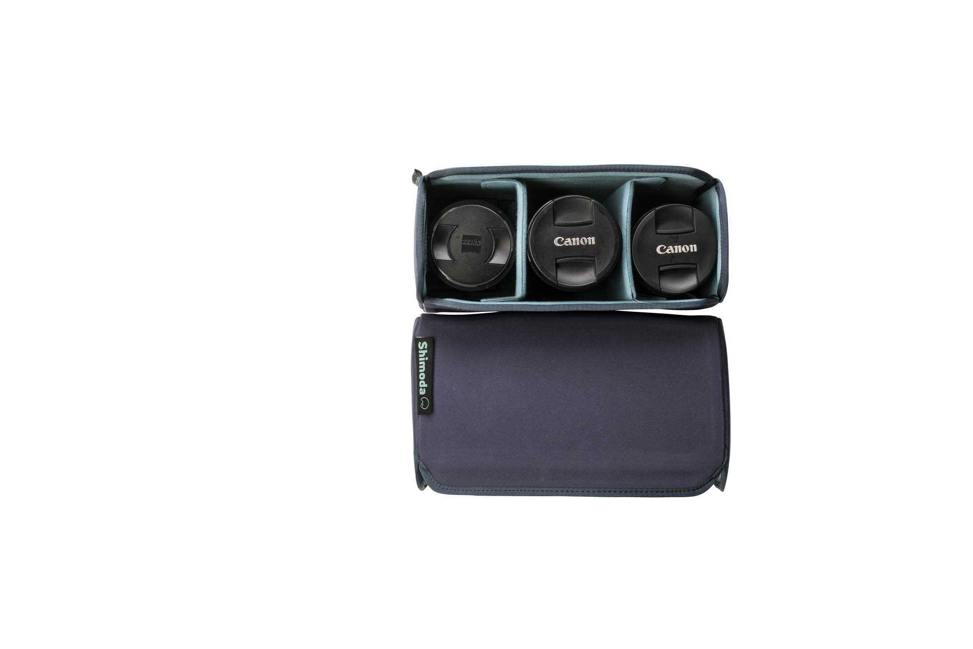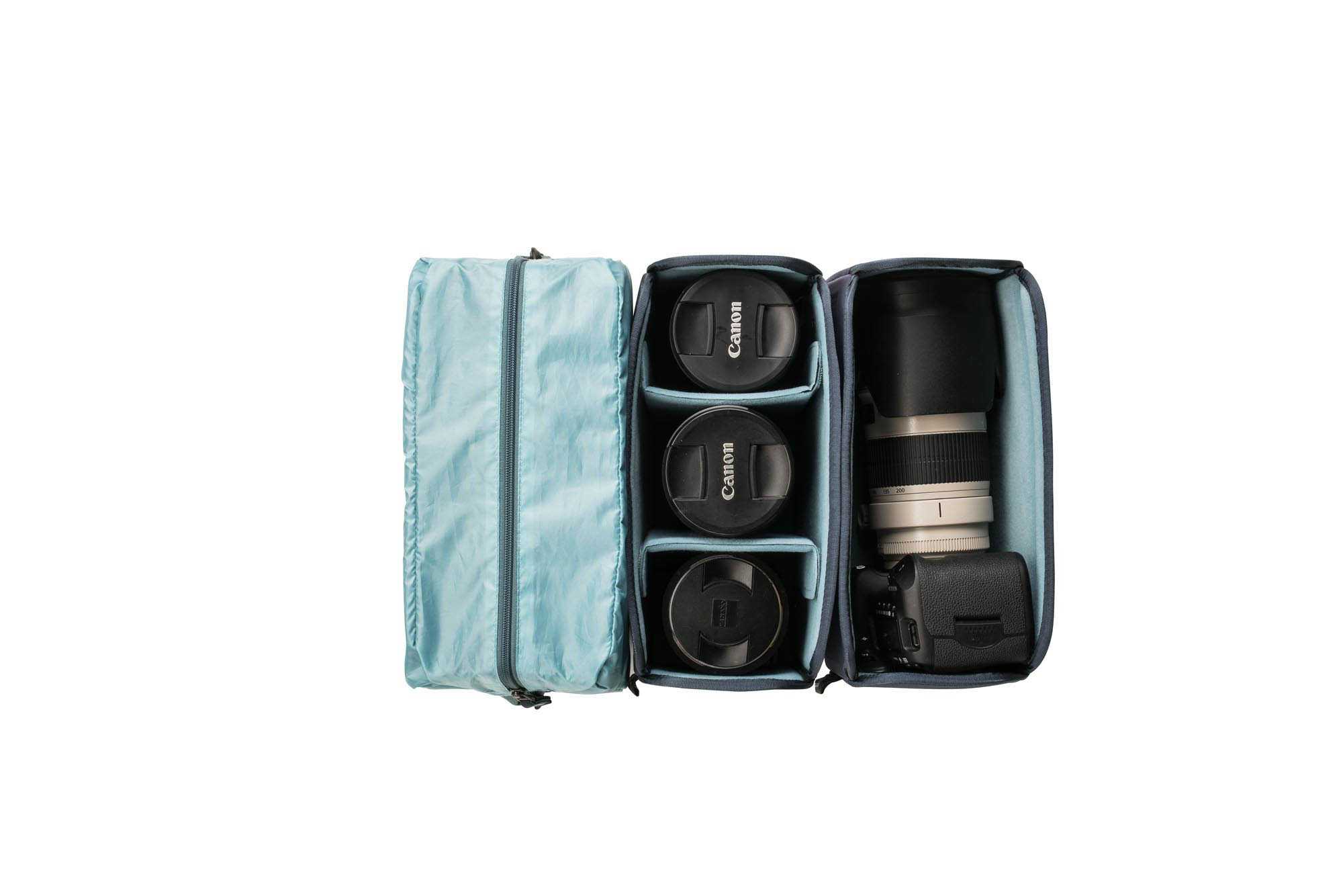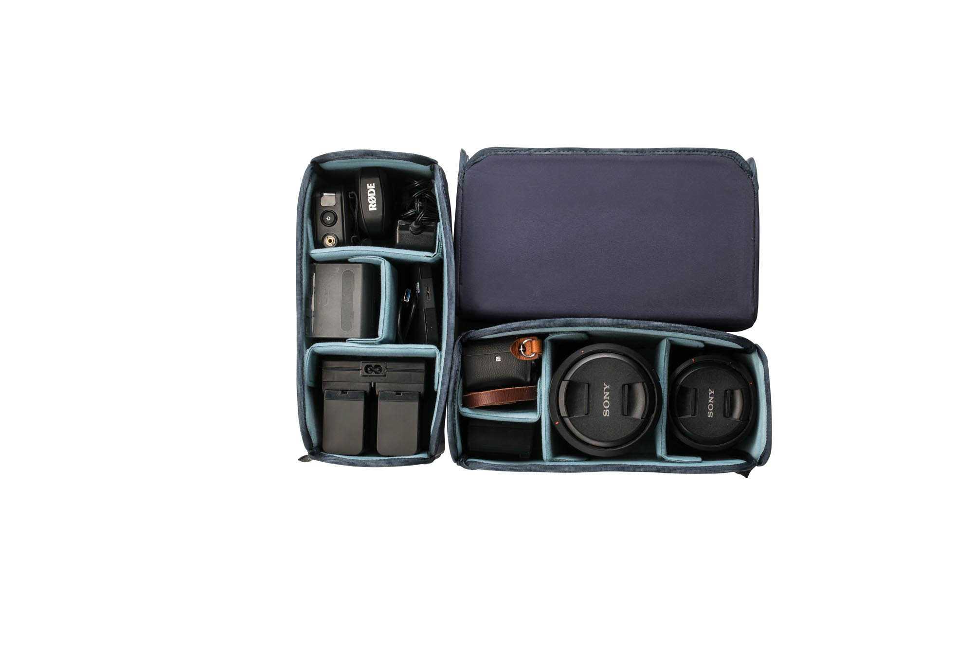 Ontworpen om een mirrorless of niet-gegripte DSLR-body met een gemonteerde lens tot 70-200mm f/2.8 te dragen. Optioneel biedt het ruimte voor 2-3 extra lenzen en accessoires.