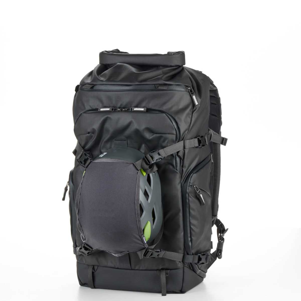 Deze rugzak is voorzien van meerdere bevestigingsriemen, waaronder TPU-compressieriemen voor het bevestigen van bijvoorbeeld ski’s.De verwijderbare helmhouder laat gebruikers bergsport-, ski- of fietshelmen aan de buitenkant van hun rugzak bevestigen.