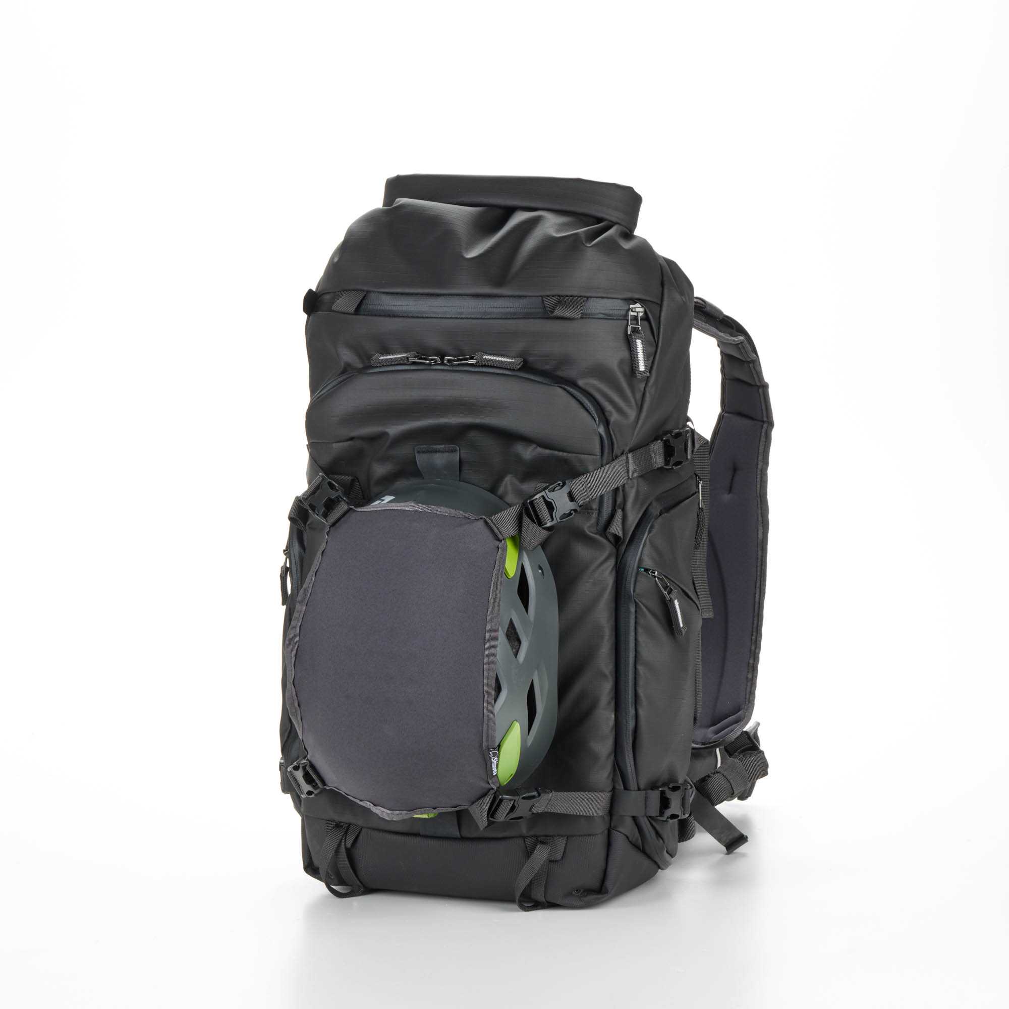 - Met de verwijderbare helmhouder kunnen gebruikers bergsport-, ski- of fietshelmen aan de buitenkant van hun rugzak bevestigen.