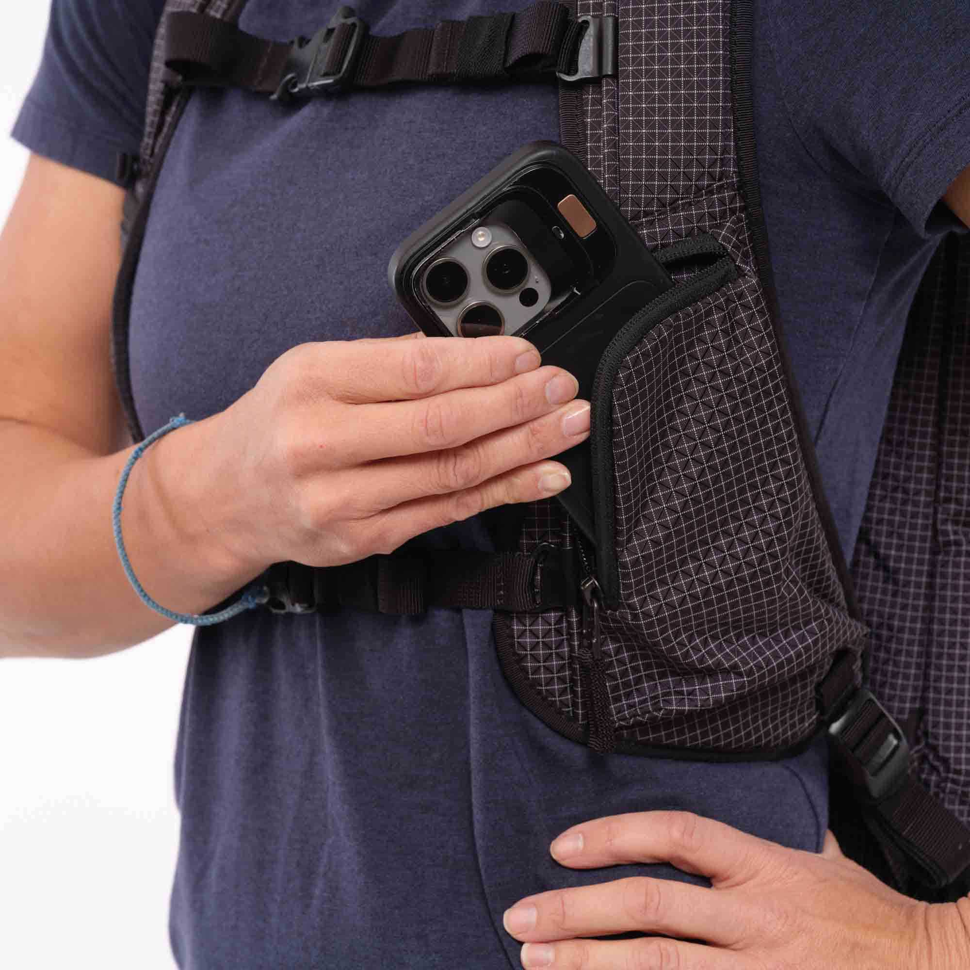 - Schouderband met ruimte voor een camera clip en smartphone vakje
