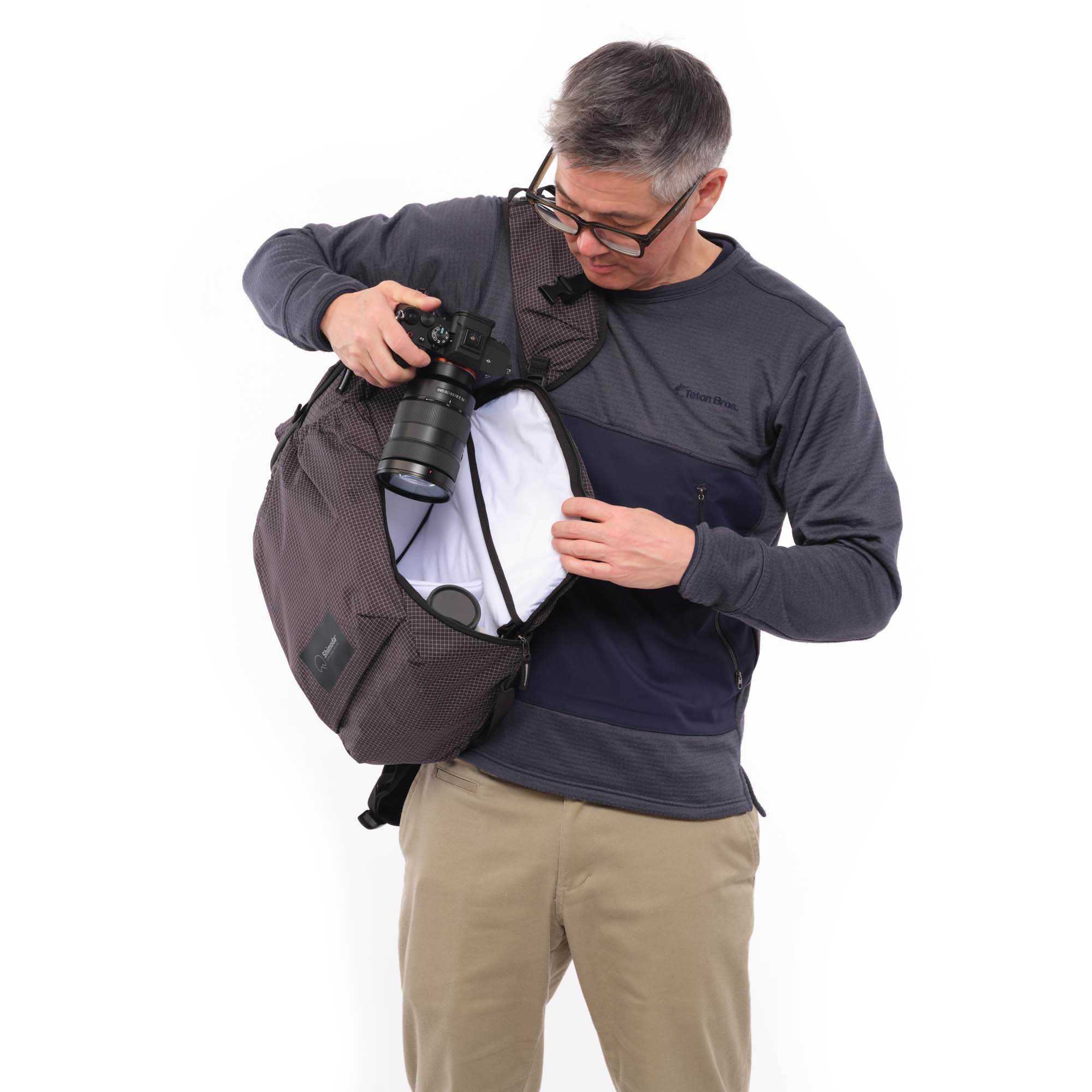 De Side Lite word1 standaard geleverd inclusief de Shimoda Top Loader Medium, maar ook de Shimoda Top Loader Small past in de rugzak.