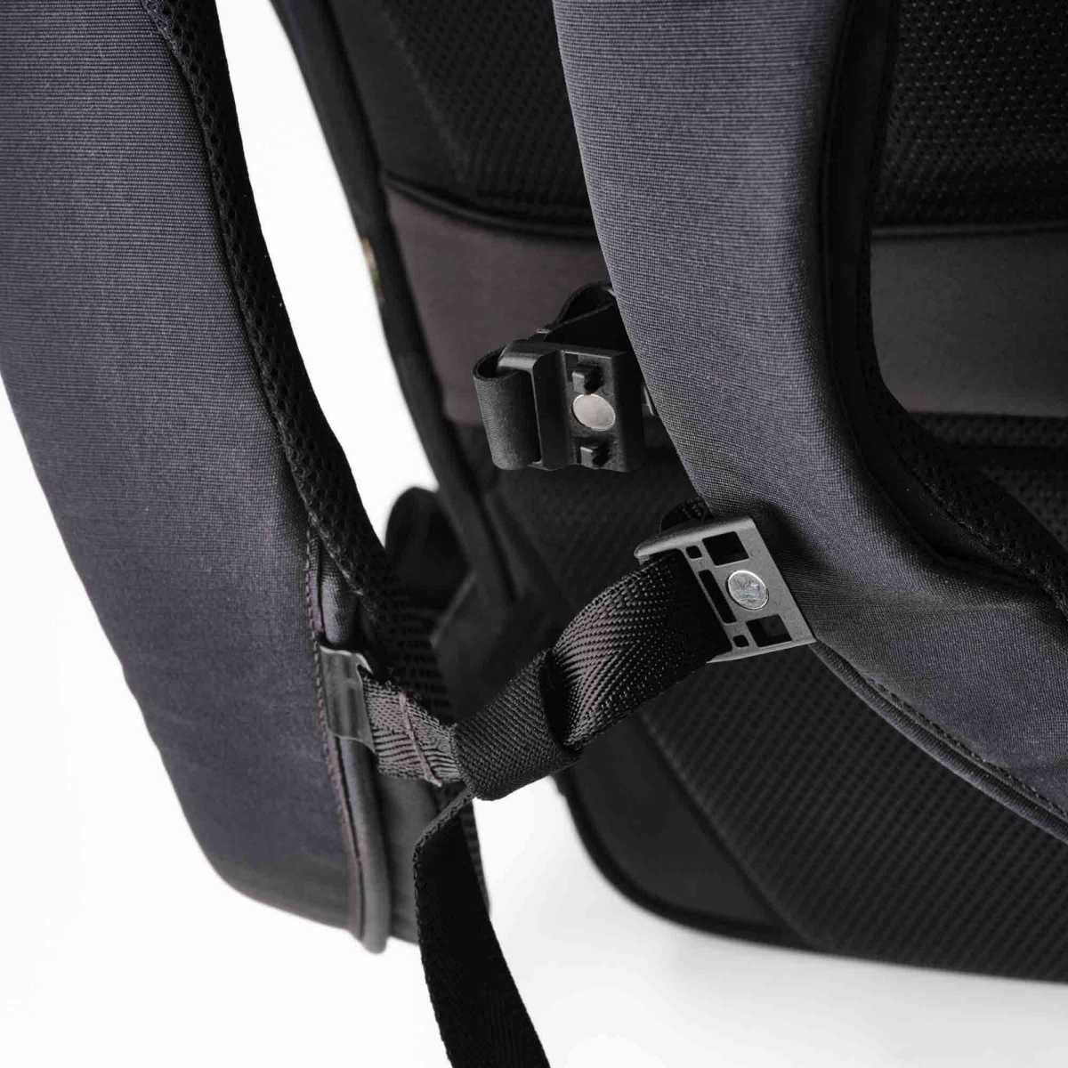 - Strap aan de schouderband om je Peak Design Capture Clip te monteren