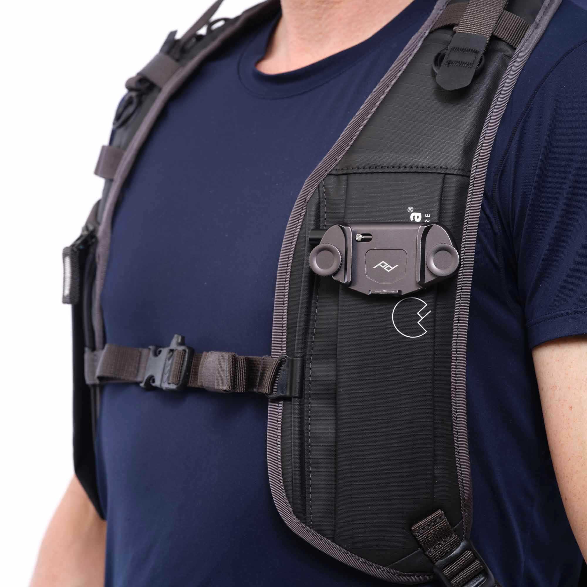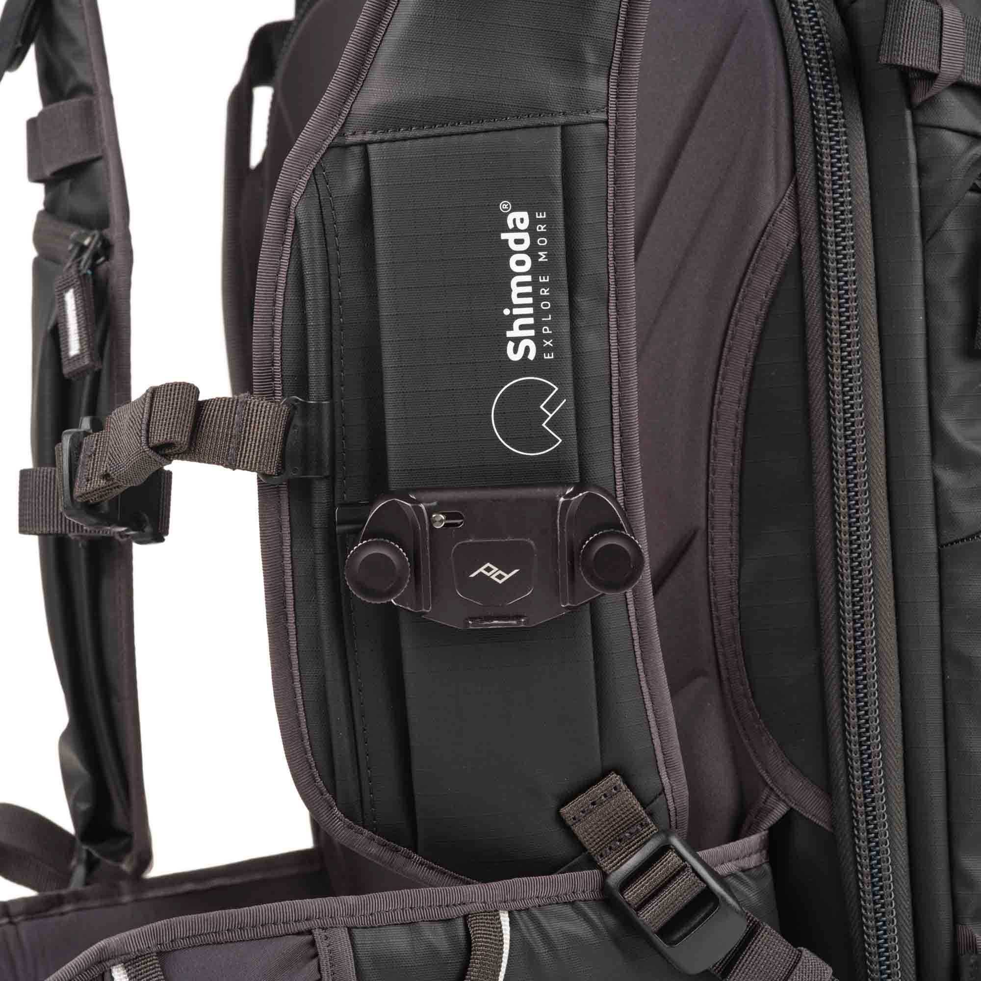 Speciaal ontworpen voor beeldmakers die een draagbare quick-release mounting plate gebruiken, zoals de Capture Clip en vergelijkbare cameraclips. Deze schouderriem vervangt de linker schouderriem van een Shimoda Action X‑rugzak.