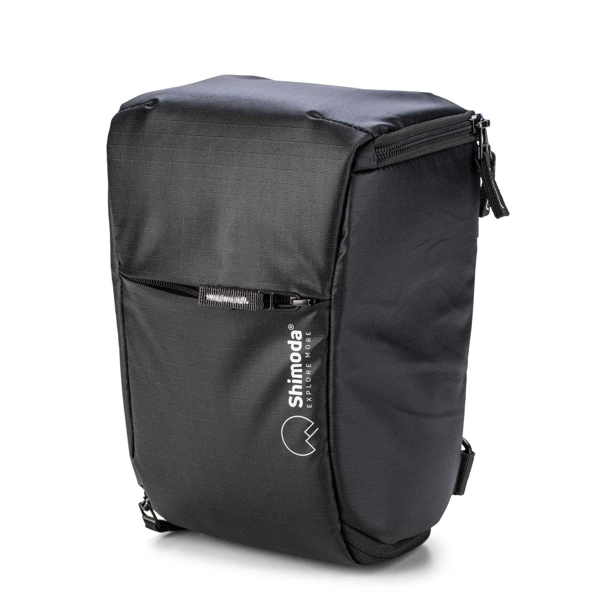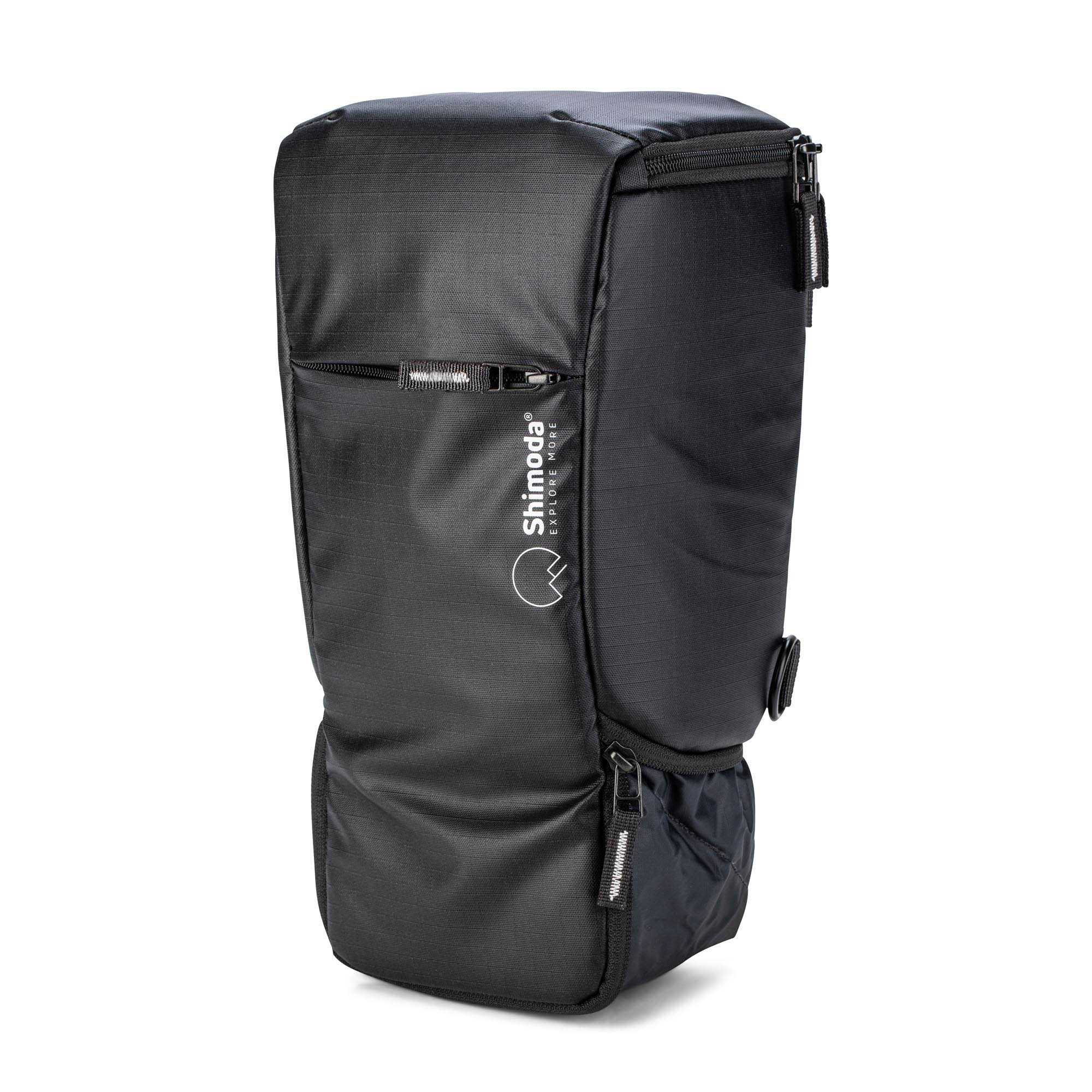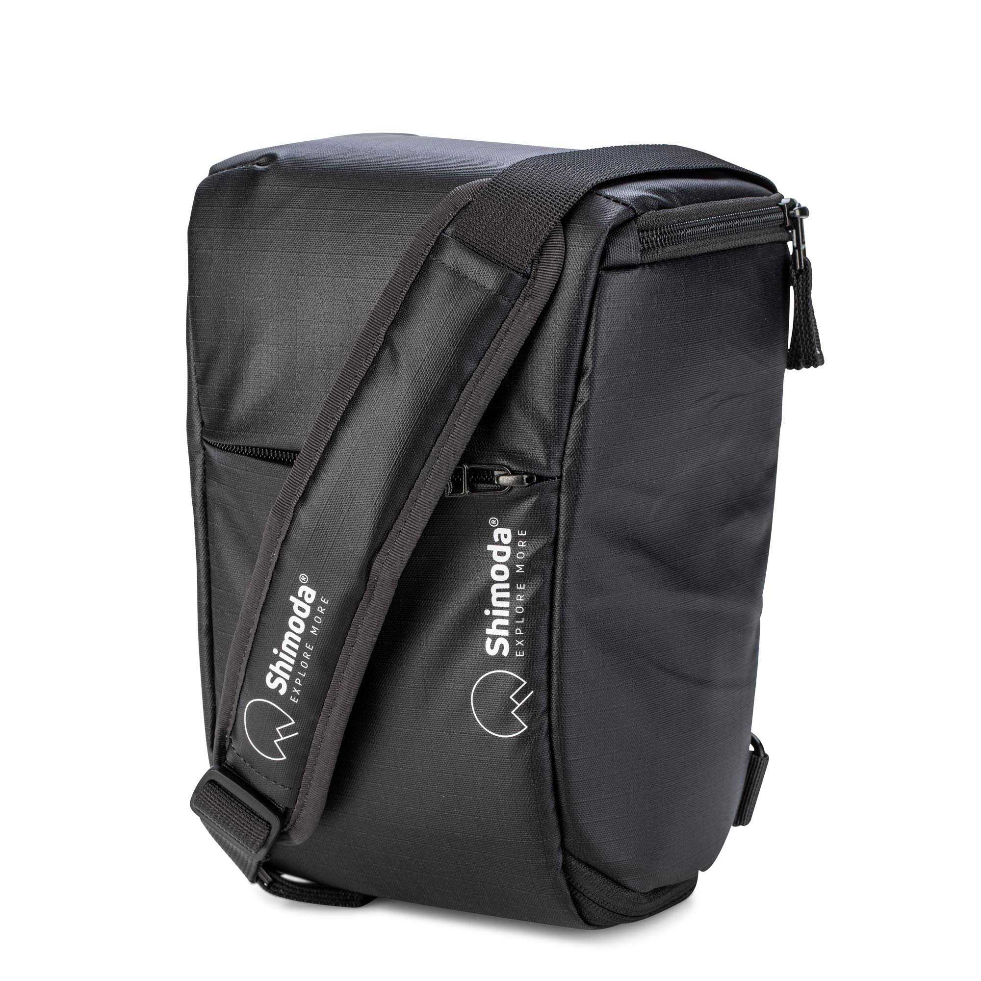 Modulair: De Top Loader is ontworpen om zowel los te gebruiken, als als onderdeel van het grotere Shimoda systeem. Voor het gebruik als losse snuittas kan hij worden gedragen met de meegeleverde schouderriem of aan een riem worden bevestigd. Als geïntegreerd onderdeel van het grotere Shimoda systeem kan hij worden gebruikt in de Action X serie via het paneel met zijtoegang, bevestigd aan de heupgordel van de rugzak of bevestigd aan de schouderbanden van de Explore/Action rugzak (met optionele accessoire riemen).
