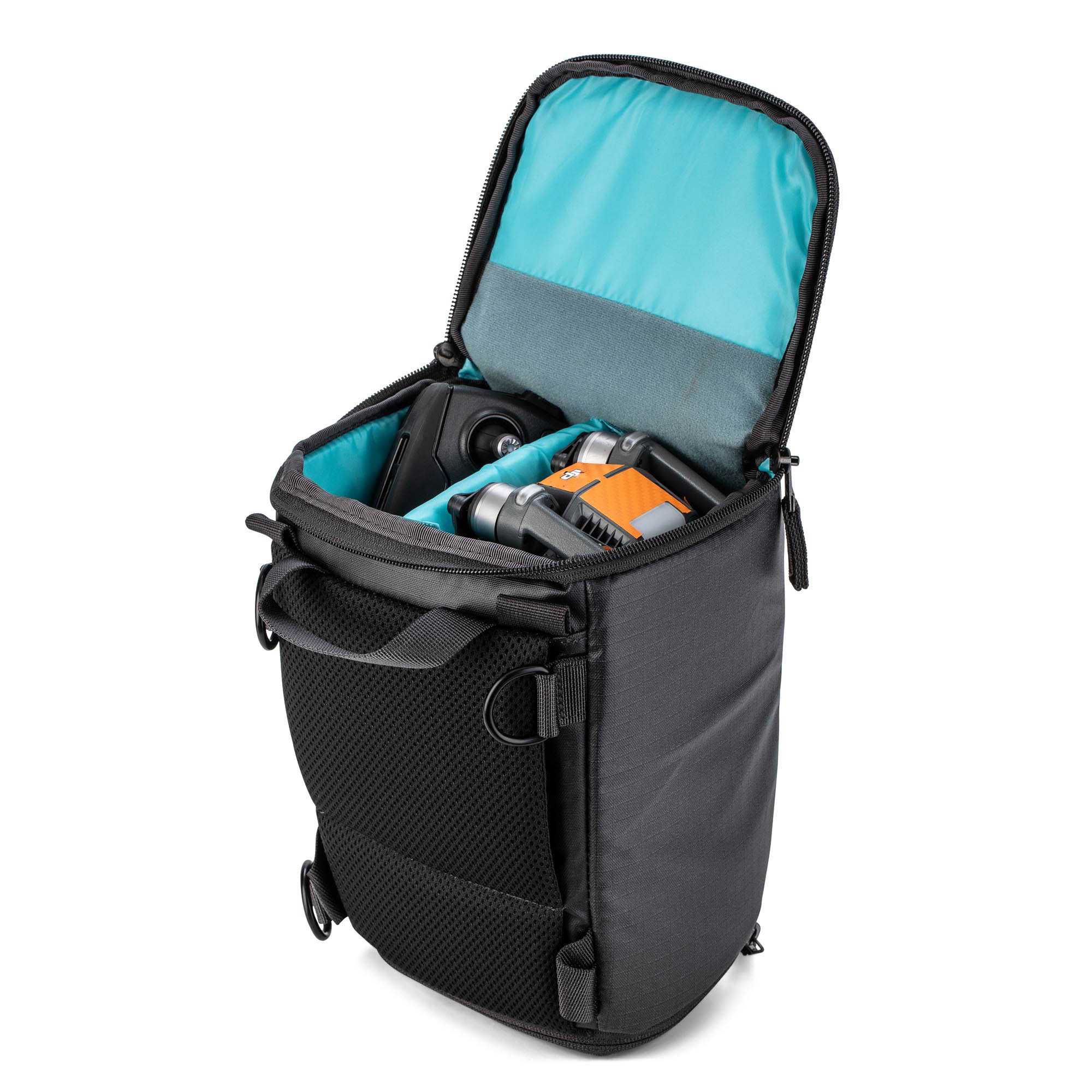 Het interieur heeft een gevoerde verdeler waarmee dronepiloten hun DJI Mavic, afstandsbediening en batterijen veilig kunnen inpakken. Tot slot kan de Top Loader in je rugzak worden geplaatst en worden ingesteld voor snelle toegang via de zijkant van de rugzak.